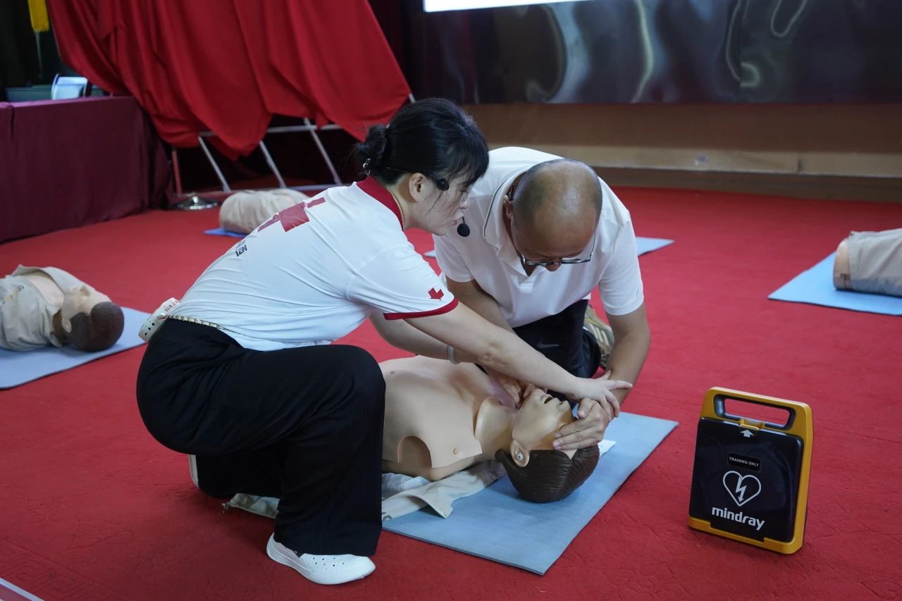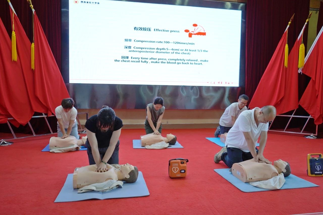 本次培训内容主要包括徒手心肺复苏术(CPR),自动体外除颤仪(AED)的使用,常见急症(急性冠脉综合征、脑卒中、糖尿病急症等)和意外伤害(骨折、外伤出血、扭伤、烫伤等)的预防和现场急救,突发事件中的防灾避险和现场救护等知识。授课老师利用人体模型,向职工演示心肺复苏急救技巧的整个流程及要点,参与培训的职工踊跃参与实操,有效掌握了应急救护实战技能。