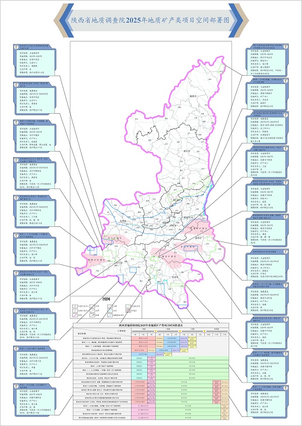 为切实做好年度地质找矿工作,开年后,陕西省地质调查院组织相关技术力量,聚焦“陕西省商洛市马家坪-高耀一带锡锑锂钽多金属矿调查评价”等年度地质找矿项目,细化工作流程,明确推进时序,夯实目标责任,编制了全院“2025年度地质矿产类项目空间部署图”和“时间推进表”,对地质找矿项目倒排工期,挂图作战、节点推进。