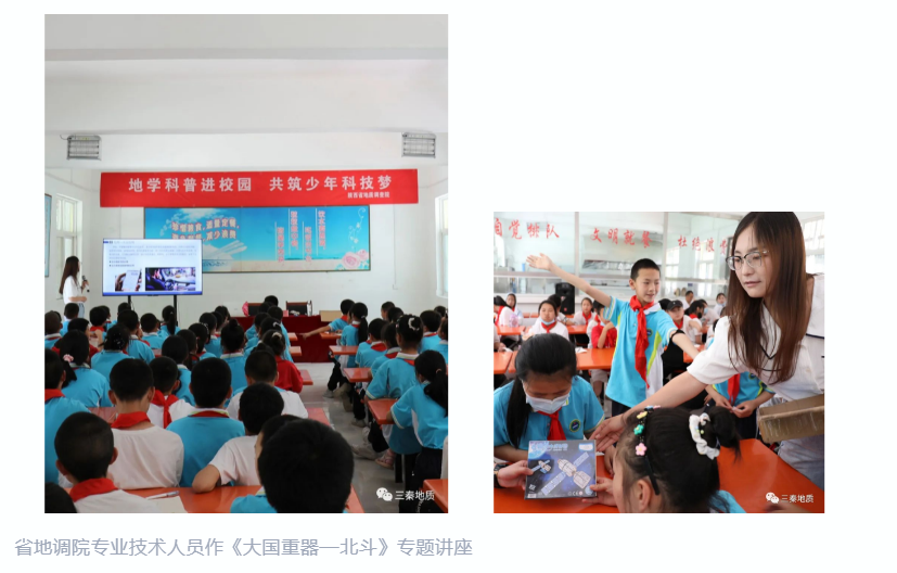 捐赠仪式后,省地调院开展了“关爱儿童身心健康 助力乡村教育振兴”“地学科普进校园 共筑少年科技梦”两场地学科普进校园活动,资深心理健康专家和省地调院专业技术人员分别为孩子们进行了心理健康专题讲座和关于大国重器——北斗的专题知识讲座,引导学生们养成健康的心态,学会自尊自爱、自信自强,帮助他们了解科学知识,激发科学热情,培养创新意识,放飞科技梦想。