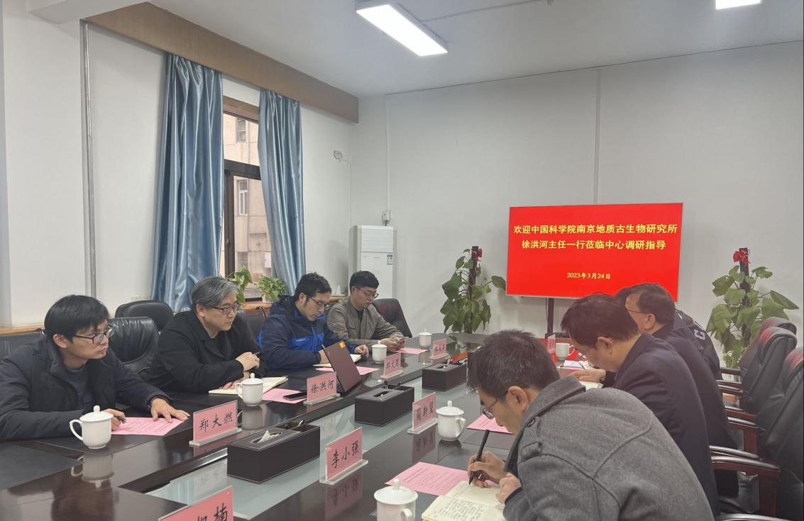 近日,中国科学院南京地质古生物研究所(简称“南古所”)地层古生物大数据中心主任徐洪河一行4人来省地调院矿产中心(省古生物化石保护研究中心)调研指导工作。南古所地层古生物咨询中心副主任郄文昆、省地调院矿产中心主要负责人及相关部门负责同志参加座谈会。