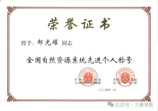 陕西省地质调查院郝光耀同志荣获“全国自然资源系统先进个人”称号