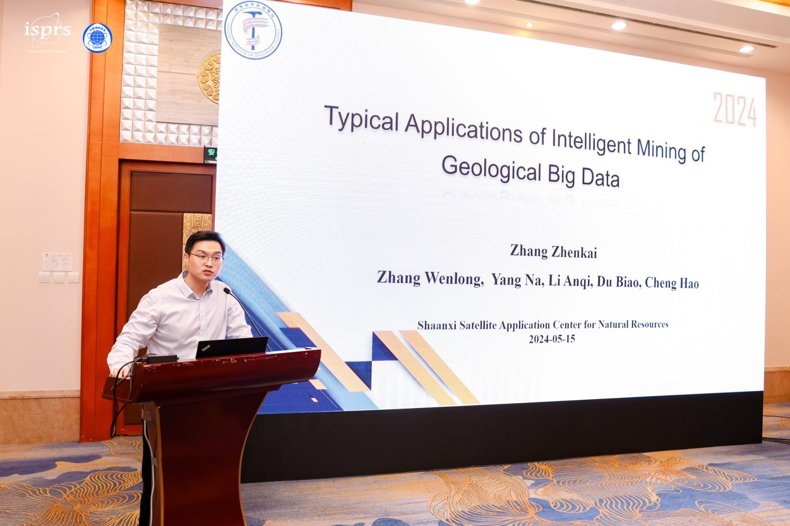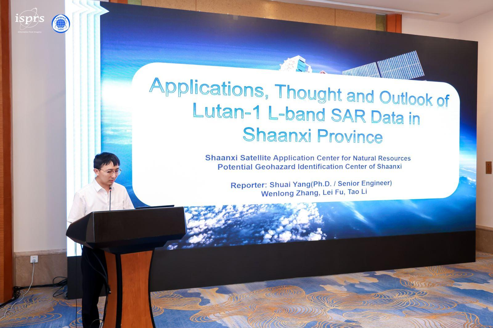 会议期间,陕西省地质调查院展台展示分享了陕西卫星遥感应用典型案例,陕西省地质调查院工作人员与参观人员交流了经验做法,杨帅、张振凯博士分别作了题为“Applications,Thought and Outlook of Lutan-1 L-band SAR Data in Shaanxi Province(陆探一号L波段SAR数据在陕西省的应用、思考与展望)”、“Typical Applications of Intelligent Mining of Geological Big Data(地质大数据智能找矿的典型应用)”的专题报告,受到了与会专家学者的广泛关注和好评。