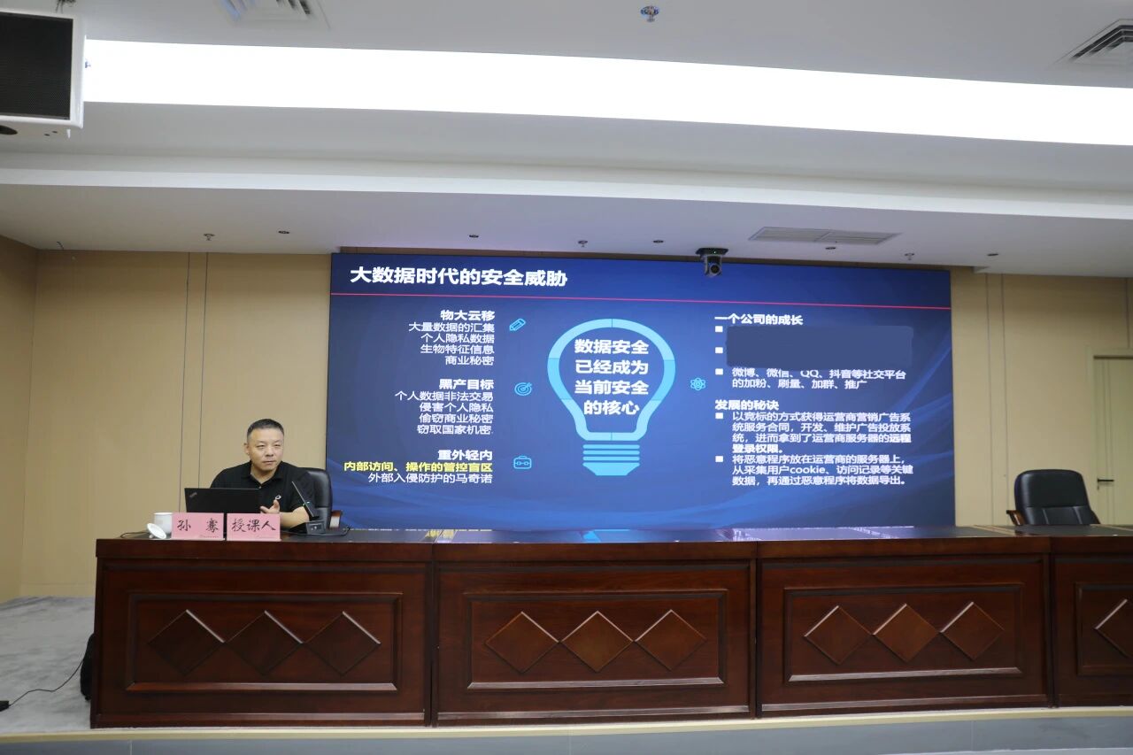 培训邀请了西北大学网络和数据中心孙骞教授和杭州安恒信息技术股份有限公司冯浩高级工程师进行专题授课。孙骞教授以“新时代网络安全形势与思考”为题,结合多起典型案例,深入剖析当前网络安全面临的新型威胁与挑战,阐述了网络安全领域的新变化与新趋势,并提出切实可行的应对举措。冯浩高工以“网络安全政策及保障措施”为题,从国家及省级网络安全政策、等级保护与密评要求、网络安全事件应急响应、常见防护技术手段、数据与应用系统安全设计等多个维度,进行了深入解读。