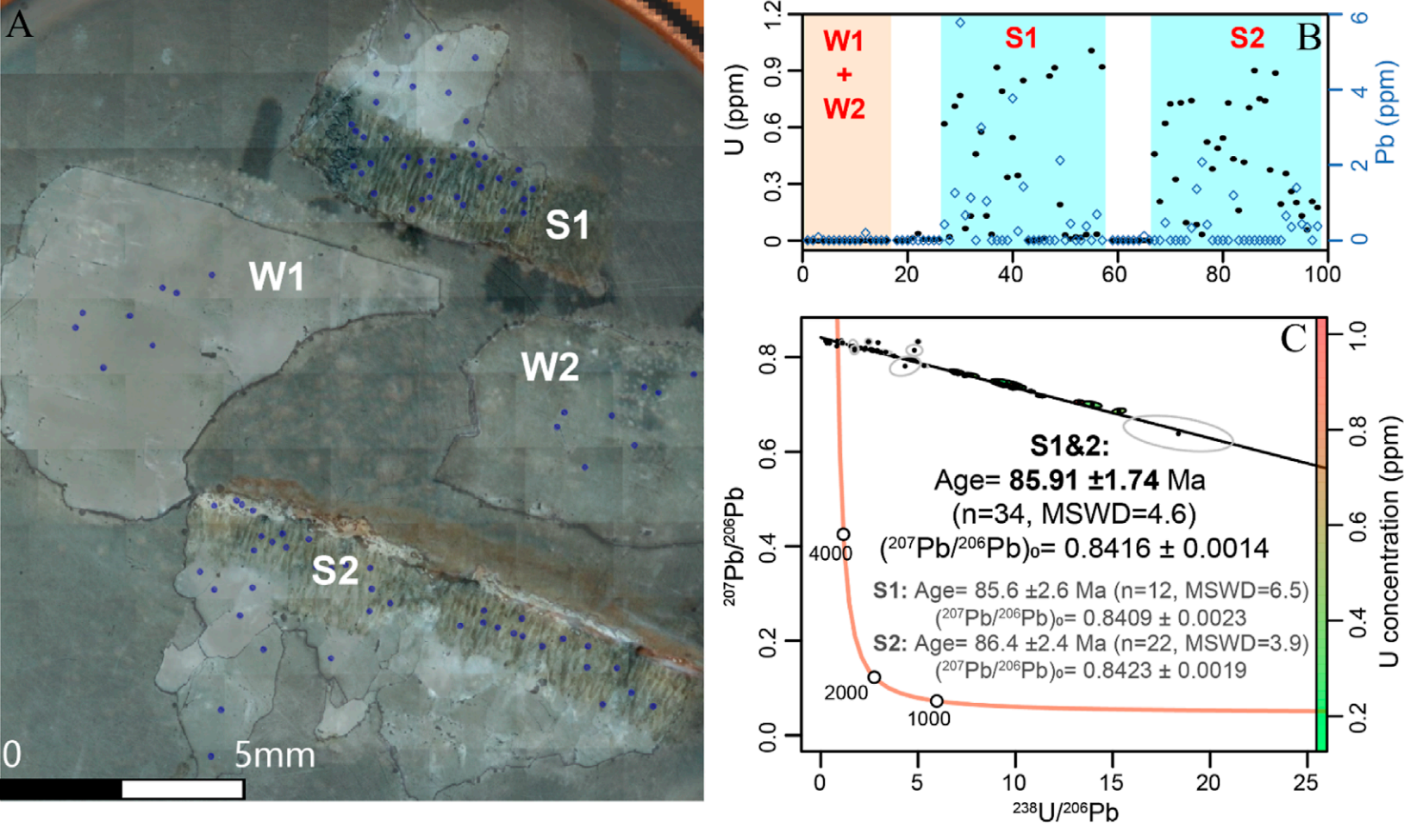 此篇论文基于由湖北省地质科学研究院牵头,陕西省地质调查院、西安交通大学、中国科学院古脊椎动物与古人类研究所联合开展的湖北省十堰市郧阳区青龙山恐龙蛋化石U-Pb测年研究,该研究为这座全球最大的恐龙蛋化石群定下了精准的“时间坐标”——通过原位碳酸盐U-Pb测年技术,首次确认青龙山恐龙蛋化石的埋藏时代为距今约8600万年,即晚白垩世康尼亚克期至桑顿期,不仅填补了青龙山恐龙蛋化石年代学研究的空白,更在古生物测年技术领域发出了“中国声音”。