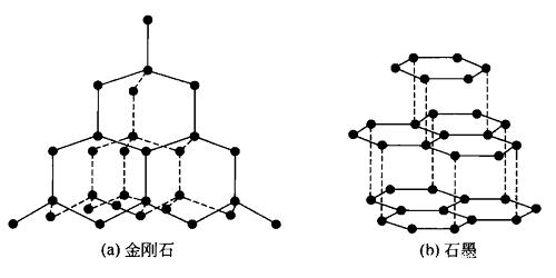 金刚石和石墨是碳(C)的两个同质多像变体,它们的晶体结构、差异巨大(图2),由此导致了两者截然不同的性质。金刚石中的碳原子以四面体结构紧密排列,每个碳原子与四个其他碳原子共享电子,形成了一个极其稳定的晶体结构。这使得金刚石成为自然界中最硬的物质,同时也是极佳的热导体。石墨中的碳原子以层状结构排列,每层中的碳原子以六角形排列,层与层之间通过范德华力(一种较弱的分子间力)相互作用。这种结构使得石墨具有良好的电导性和润滑性,但硬度较低。