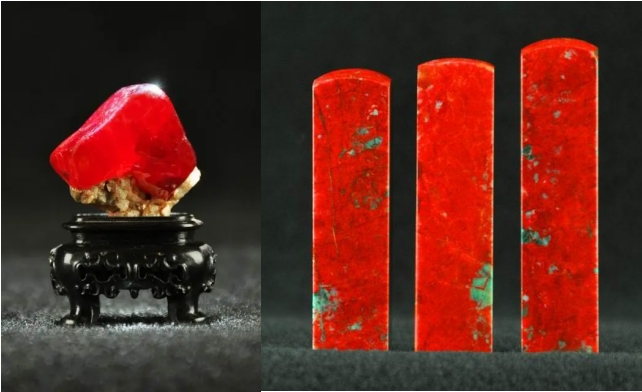 作为我国四大汞矿基地之一,旬阳汞锑矿区因其独特的鸡血石而备受推崇。鸡血石有着鲜红如鸡血的色泽,被视为印章石之王,它的色泽形成与汞密切相关,其独特的红色斑点主要来源于辰砂,即硫化汞的结晶体。汞与矿物质结合,通过自然的“调色板”作用,形成了令人惊艳的红色。鸡血石因其独特的自然形成过程而被视为大自然的杰作,成为收藏家和艺术家的珍爱之物。