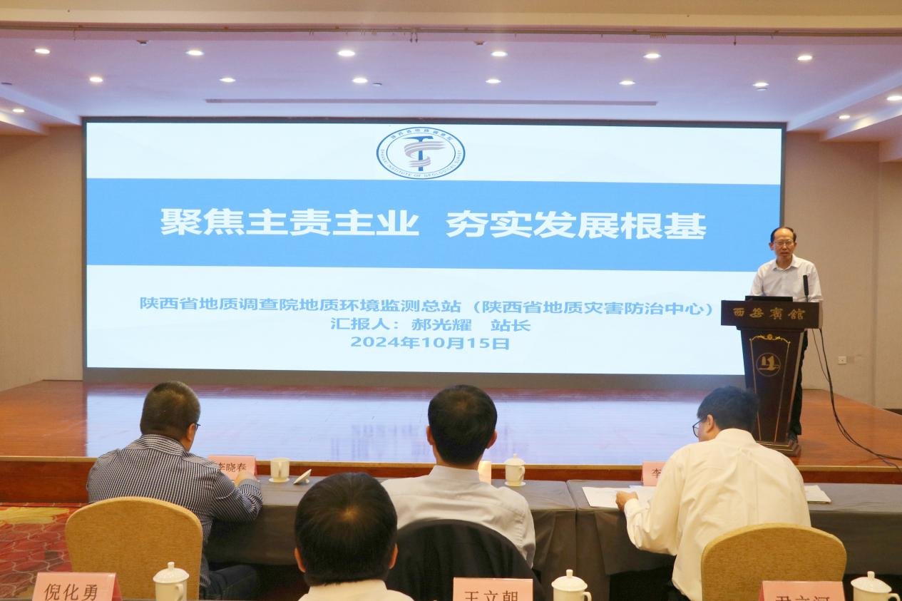 会上,陕西省地质调查院地质环境监测总站站长郝光耀作了题为《聚焦主责主业 夯实发展根基》的经验交流报告,介绍了总站在地质灾害防治、水资源调查评价、矿山生态修复、人才培养与科技创新等方面的工作成效与实践探索。