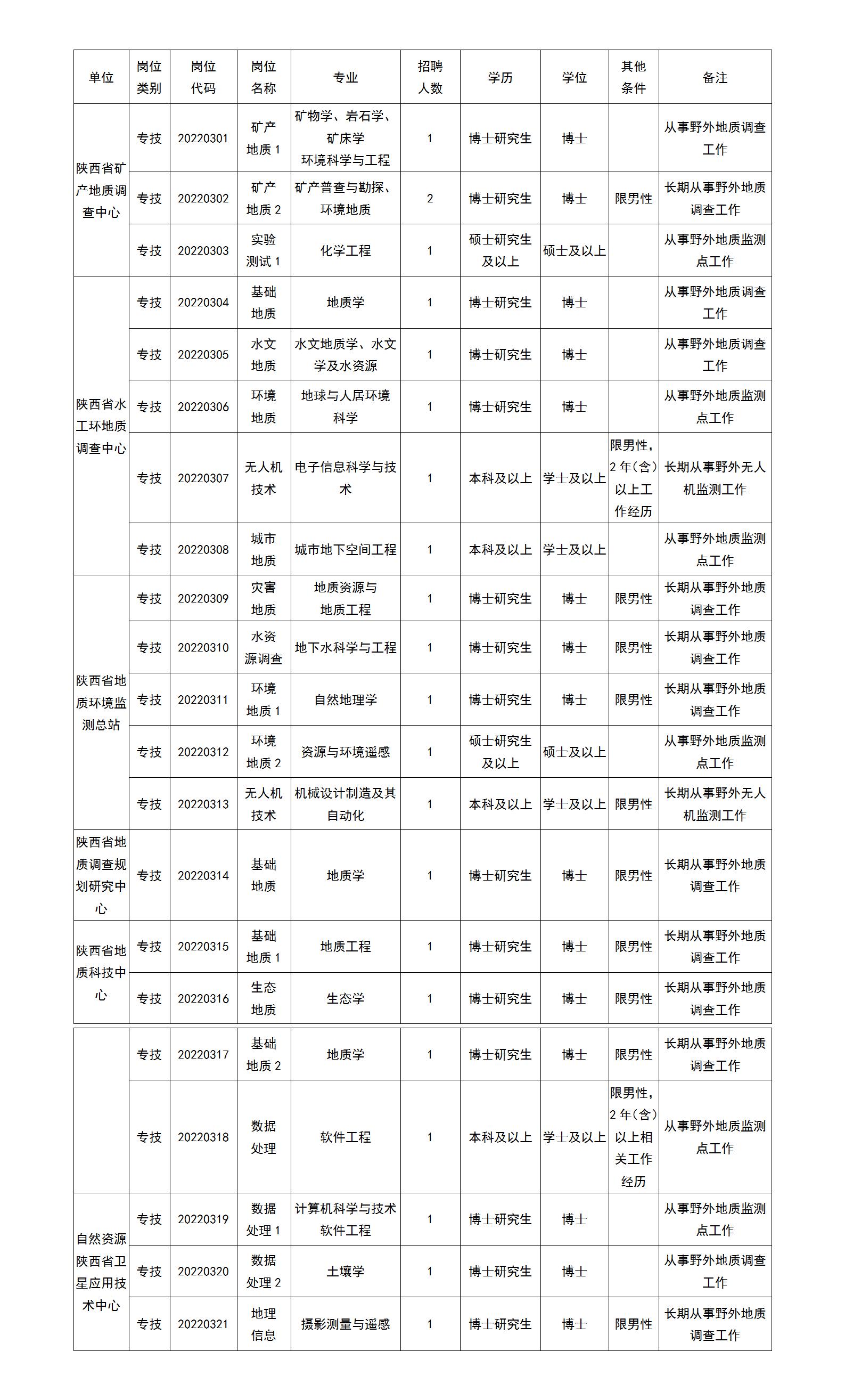 陕西省地质调查院2022年公开招聘博士研究生和急需专业技术人员公告