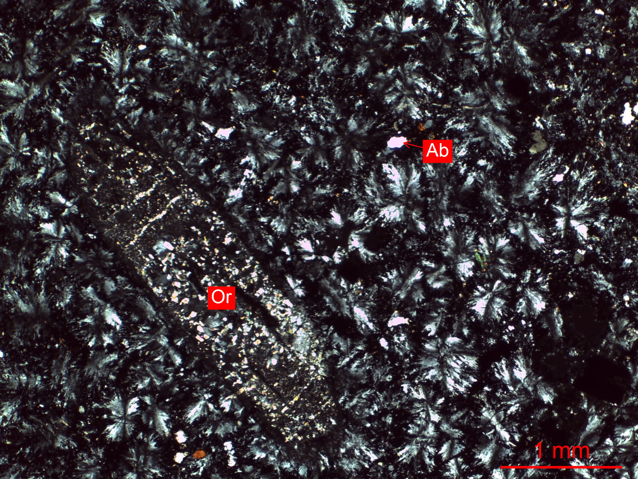 灰白色黑云母正长斑岩25x(正交偏光+)