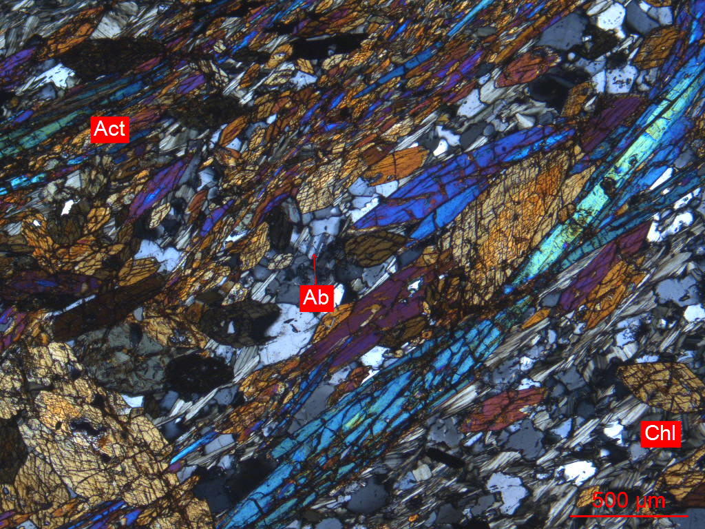 Act-阳起石、Ab-钠长石、Chl-绿泥石