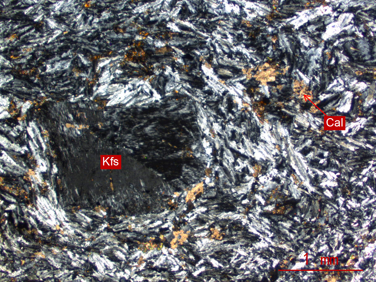 灰白色蚀变花岗斑岩25x(正交偏光+)