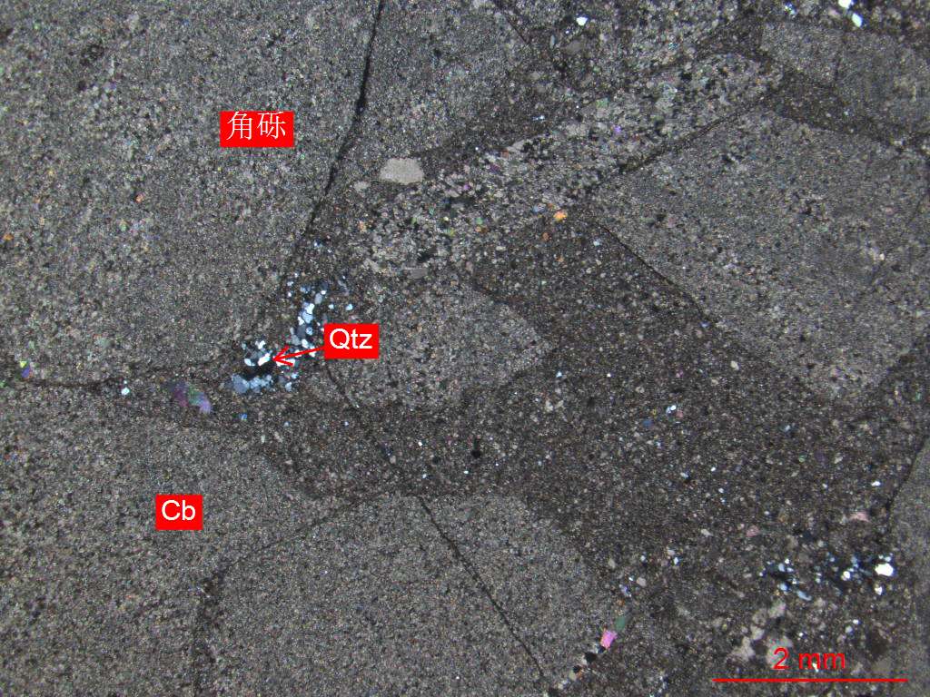 灰色灰岩质角砾岩12.5x(正交偏光+)