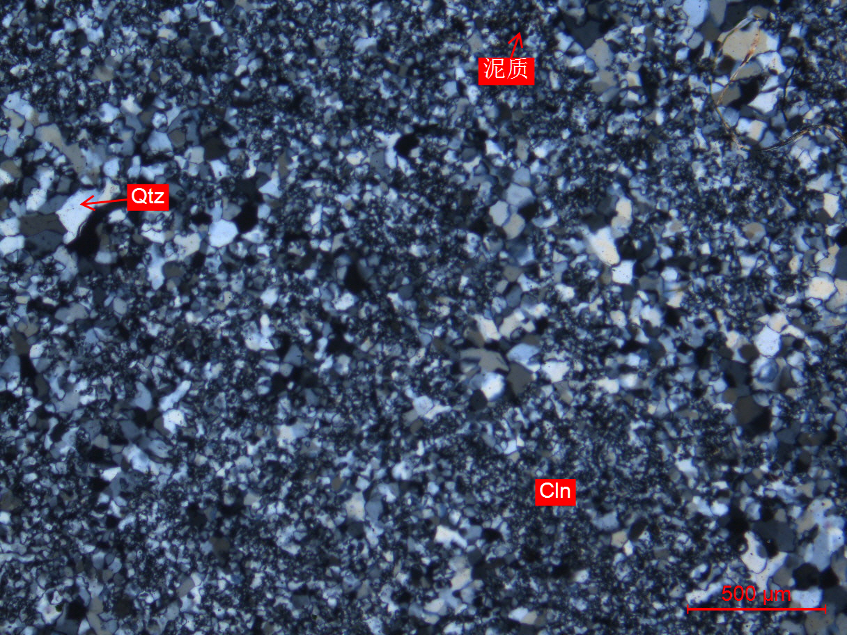 灰色中粗粒长石砂岩40x(正交偏光+)