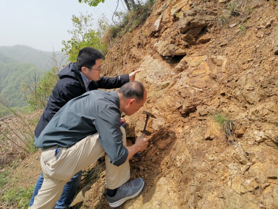 面对困境,项目负责人蔡文春从未退缩,始终坚定找矿信念。他发扬党员先锋模范作用,白天带领项目组人员翻山越岭开展地质填图、查脉找矿,做实做细每一条伟晶岩脉矿产检查工作。晚上回到驻地继续整理资料,扎实开展典型矿床对比研究,分析成矿规律,与团队成员一起总结经验,探讨找矿思路。在扎实的野外工作和典型矿床研究基础上,项目组发扬“敢想、敢干和敢试”的创新精神,主动跳出了固有找矿思维,严谨论证、科学建立了工作区伟晶岩型锡及稀有金属找矿模型。按照“确定伟晶岩母岩—查明伟晶岩脉分布规律—优选伟晶岩脉带—确定成矿有利地段”的工作思路,优选大东沟一带开展地质填图及矿产检查工作。