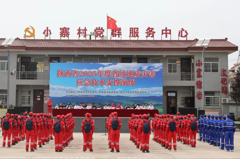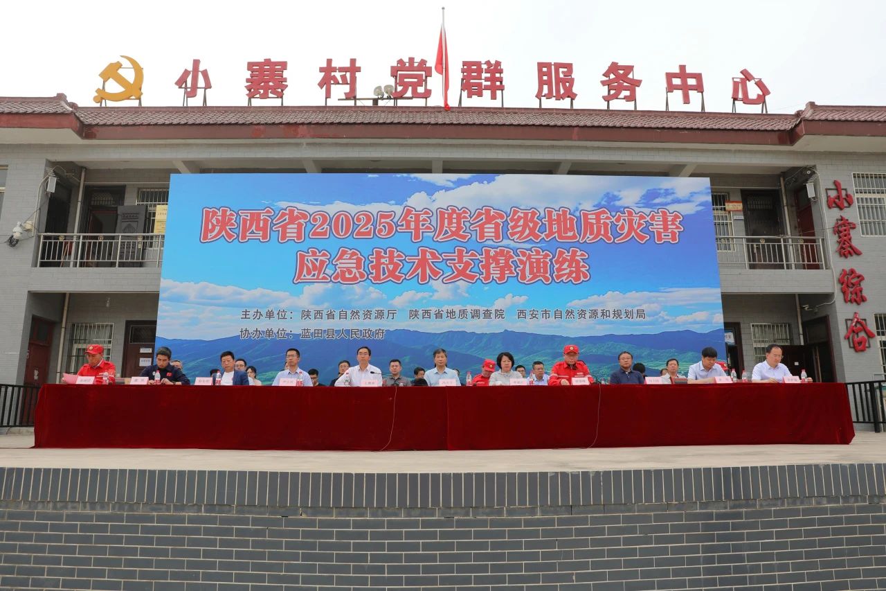 4月25日下午,陕西省2025年度省级地质灾害应急技术支撑演练在蓝田县小寨镇小寨村举办。本次演练由陕西省自然资源厅、陕西省地质调查院、西安市自然资源和规划局共同主办,蓝田县人民政府协办。省自然资源厅党组成员、副厅长王雁林担任演练总负责,省地质调查院院长侯登峰担任现场指挥长。中国地调局西安地调中心副主任尹立河,省应急管理厅二级巡视员马力剑,省气象局二级巡视员赵光明,陕西地矿集团有限公司总工程师马思锦,中陕核工业集团有限公司副总经理岳荣昌,陕西省煤田地质集团有限公司副总经理韩志雄,西安市自然资源和规划局党委委员、副局长李伟,蓝田县委常委、常务副县长苏护强出席。演练由省地质调查院副院长张晓团主持。