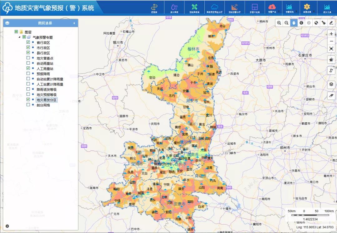 陕西地质云整合地质灾害调查数据、地质环境数据、气象数据等,建立地质灾害气象预警分析模型和训练模型,快速生成地质灾害气象预警预报图,及时多渠道发布预警预报信息,全面提升地质环境与地质灾害防治信息的分析与预警、决策与处置能力。
