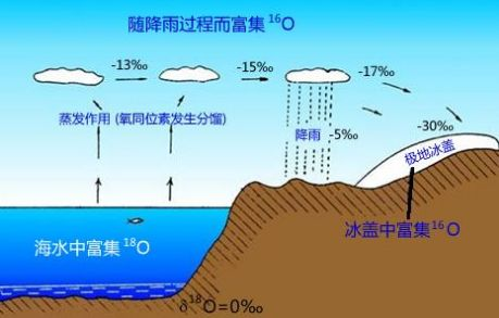 同位素能够记录过去的气温信息,主要是利用了同位素质量分馏的相关原理。例如通过氢氧同位素分析可以对古气候进行反演,通俗地说,就是在同等温度下,轻同位素更容易散发到空中,重同位素更容易富集在水中,而天然水体蒸发的强度主要受气候的影响,这样不同水体中的氢氧同位素组成便能反应气候状况。当受气候变化影响的水体封存在一些地球深部空间的时候,就可以用来研究古气候。