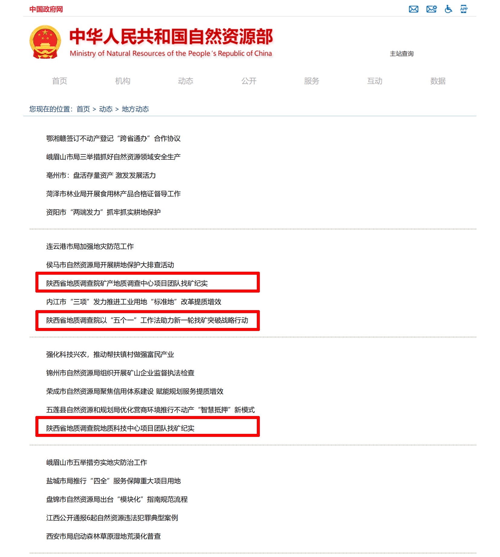 新一轮找矿突破战略行动启动实施以来,陕西省地质调查院深入贯彻习近平总书记给山东省地矿局第六地质大队全体地质工作者回信精神,扎实开展基础地质调查、矿产资源调查评价、综合研究及矿产资源国情调查等工作,全院广大地质工作者扎根野外一线,勇担找矿突破重任,大力弘扬李四光精神、“三光荣”传统,不断涵养找矿报国的初心使命,用实际行动践行“强国有我”的铮铮誓言,涌现出了一批先进找矿事迹。