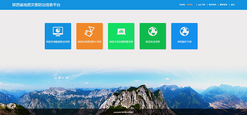 积极推进地质灾害防治信息化建设,充分利用省内网络资源、云计算及大数据技术,建立了地质环境数据中心和地质灾害防治云平台,并下设云平台管理、地质环境查询统计、地下水分析、地质环境云门户、地质灾害监测预警、地质灾害气象预警、短信发布、矿山地质环境分析等多个子系统,广泛应用于汛期值班、地质灾害月报、群测群防动态更新、信息发布等业务,为陕西省地质灾害防治管理提供了有力的信息化支撑。