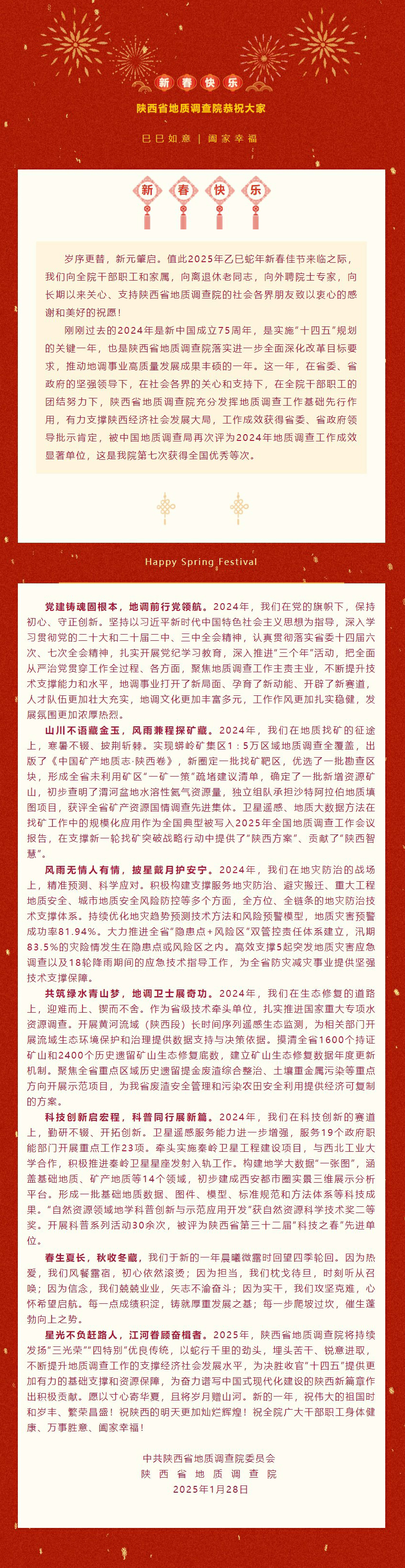 陕西省地质调查院2025年新春贺词