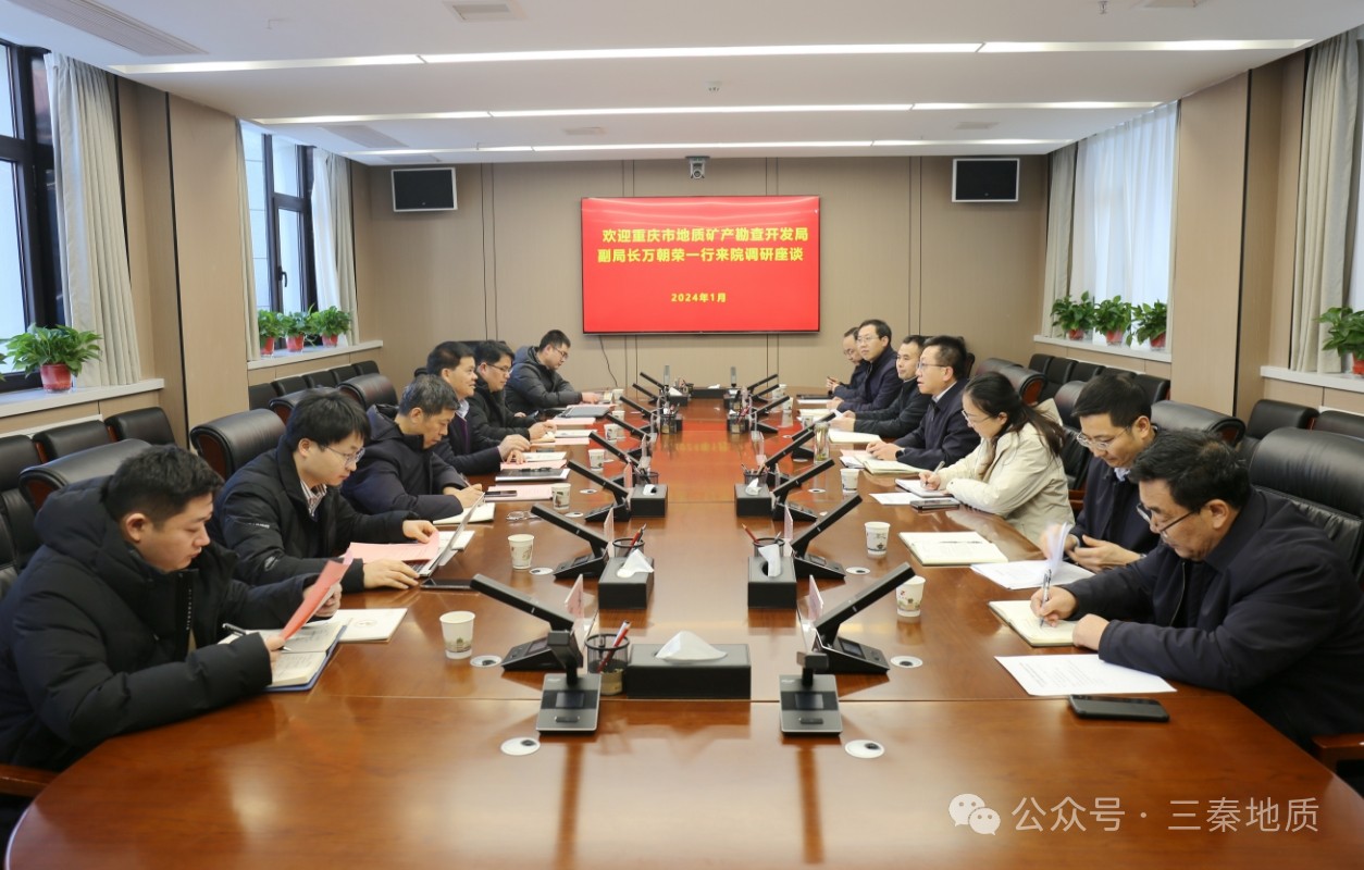 1月24日,重庆市地质矿产勘查开发局副局长万朝荣一行来陕西省地质调查院调研。省地调院院长侯登峰主持座谈会,双方单位有关处室和单位主要负责同志参加座谈。
