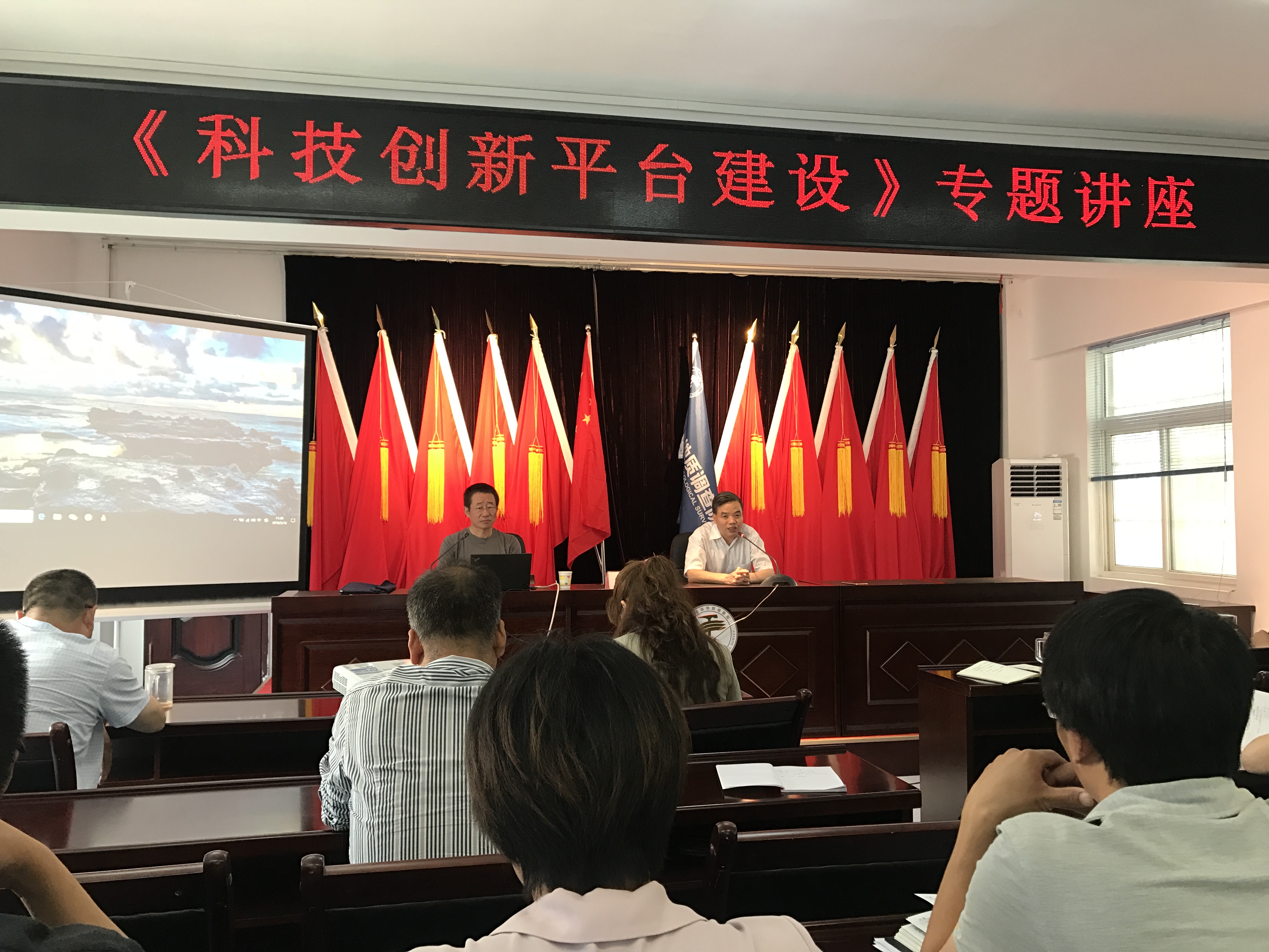 为加快推动我院科技创新平台建设相关工作,2018年5月16日,自然资源部重点实验室与野外科学观测研究基地办公室张辉旭副主任应邀赴我院开展专题讲座。省国土厅、省地调院、省属地勘单位及高校相关负责人及专业技术人员60余人参加学习。会议由省地调院总工程师宁奎斌主持。
