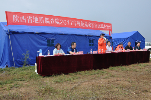 8月23日,我院在蓝田县三官庙镇宋家坡村堡子湾举行了2017年地质灾害应急调查演练,对应急响应、应急调查、应急排查、应急测绘监测、应急保障、现场会商等各个环节按照预案进行了实战演练。现场演练由院长苟润祥担任指挥长,副院长黄建军、总工程师宁奎斌任副指挥长,我院党委书记洪增林和省国土资源厅副厅长雷鸣雄及地环处处长王雁林在省地质灾害应急指挥中心与现场连线。省政府应急办主任白凡、应急指导处处长曹国瑞,西安市国土资源局副局长李小峰,蓝田县国土资源局局长郗仙茹等莅临现场观摩,我院机关、直属单位和蓝田县国土资源局地质灾害应急专家、技术人员100余人参加了演练。