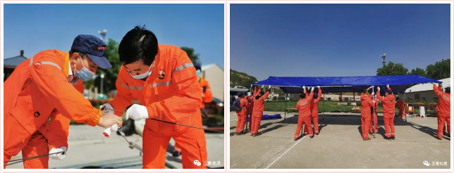 演练过程中,后勤保障组迅速搭建帐篷,设立应急指挥部办公室。