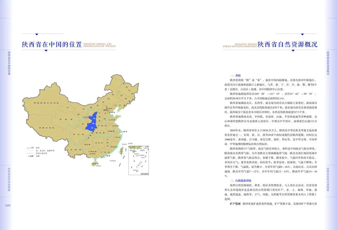 近日,由陕西省地质调查院、中国地质调查局西安地质调查中心联合编制的《陕西省自然资源图集》(以下简称《图集》)正式面向社会出版发行。