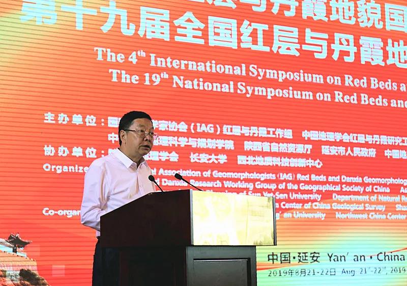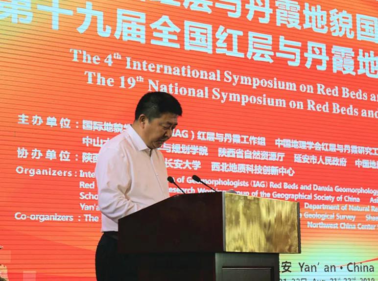 8月21日上午,第四届红层与丹霞地貌国际研讨会暨第十九届全国红层与丹霞地貌学术讨论会在陕西省延安市开幕。来自世界7个国家、国内外70余家科研机构的300余名院士、专家、学者参加了会议。国际地貌家协会副主席苏内尔·库马德,亚太世界地质公园网络联盟副主席李洙宰,中国科学院院士张国伟,中国工程院院士王双明,中国地理学会红层与丹霞研究工作组副主任王少华,陕西省副省长魏增军出席开幕式。延安市政府、陕西省自然资源厅和陕西省地质调查院的有关负责人参加了会议。