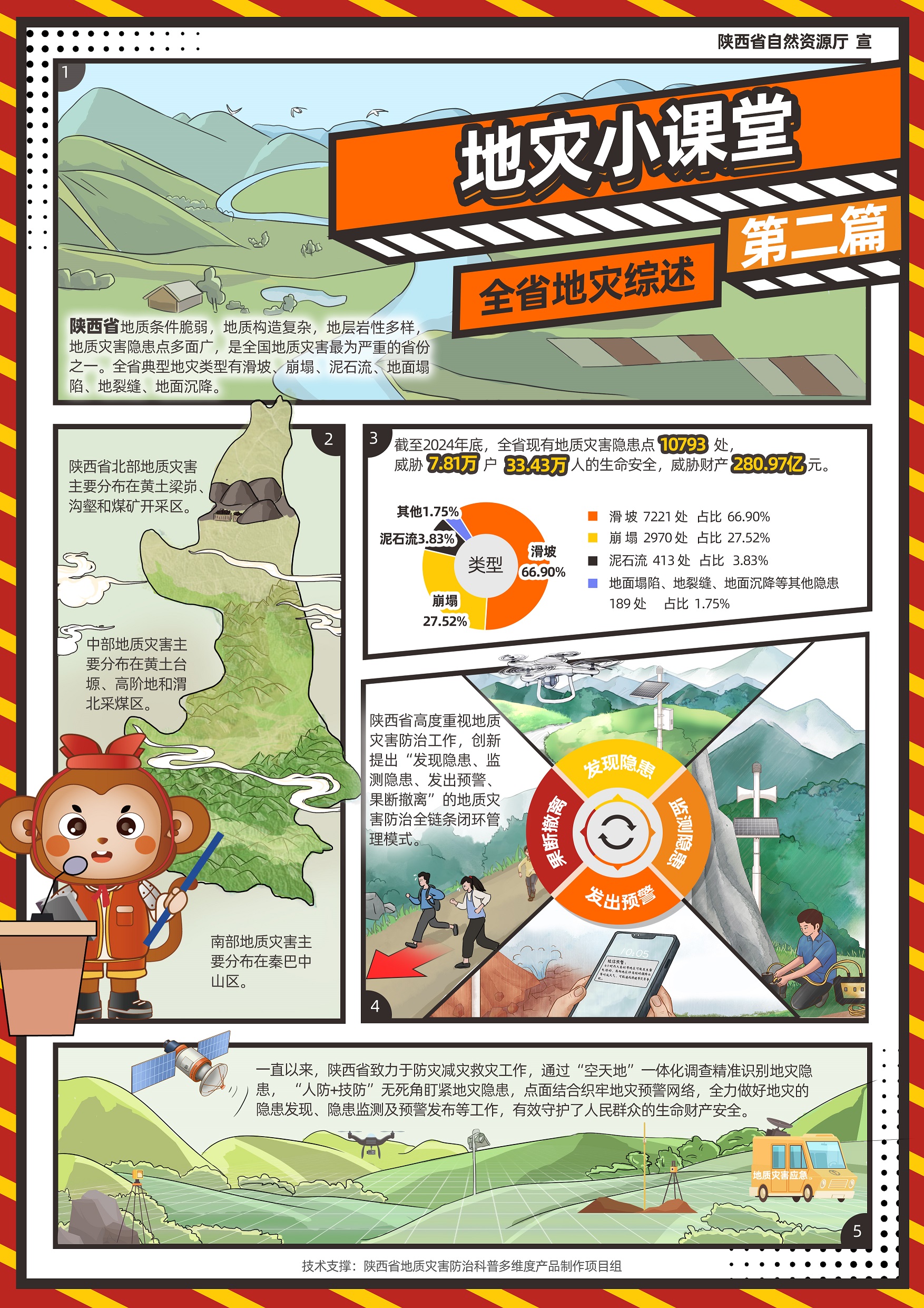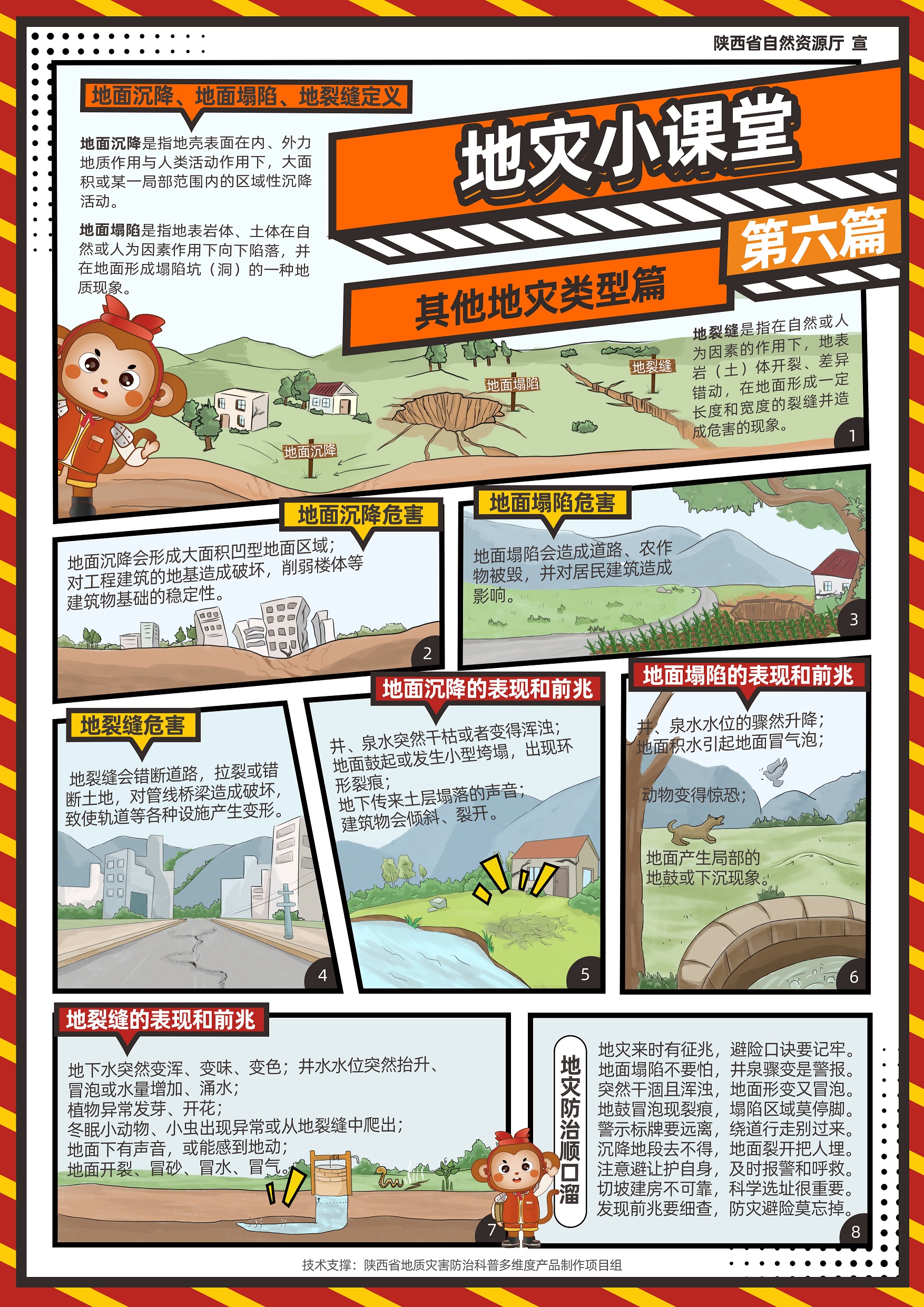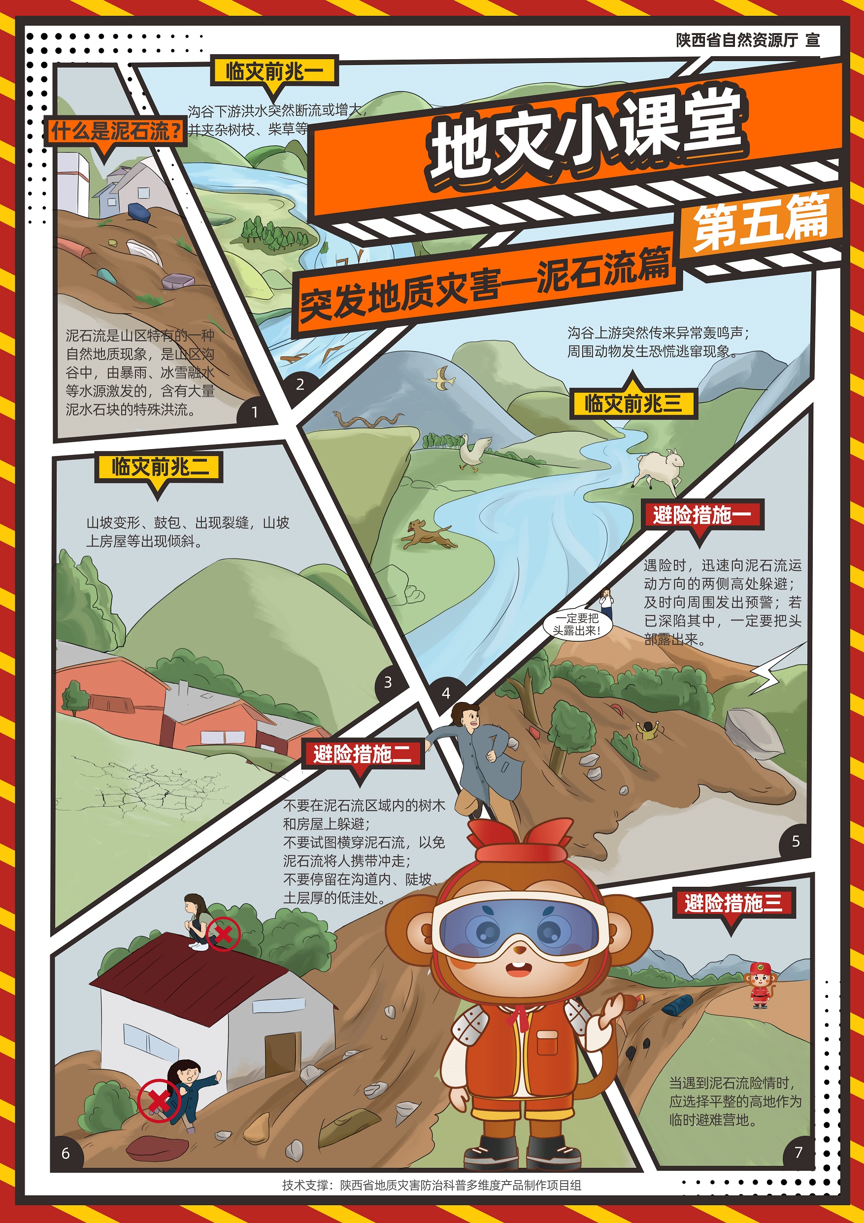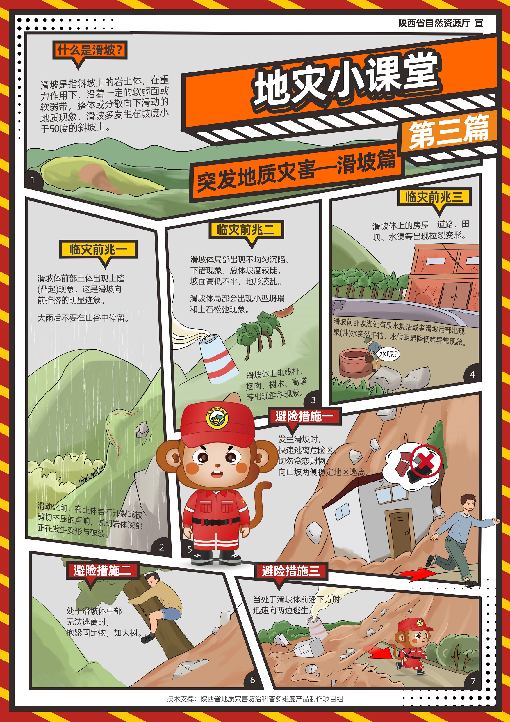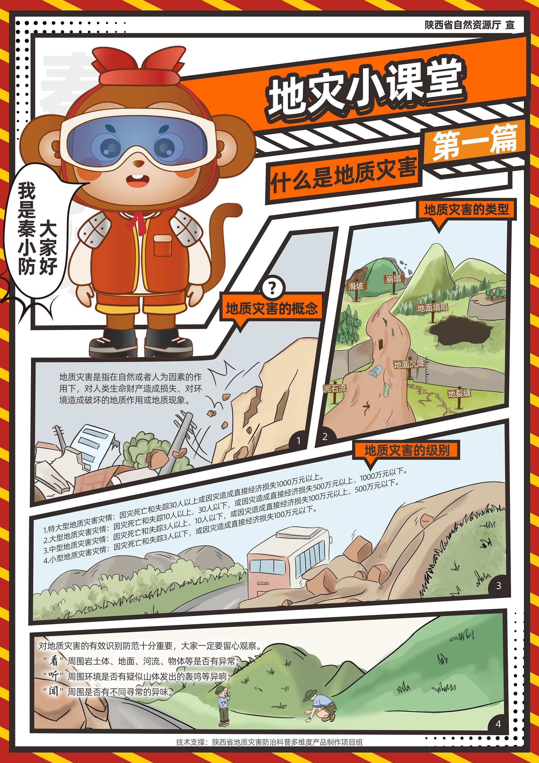 近日,由陕西省自然资源厅指导,陕西省地质调查院科技中心“陕西省地质灾害防治科普多维度产品制作”项目组精心研发制作的《“秦小防”地灾小课堂》系列漫画正式亮相,为陕西省地质灾害防治科普工作注入了全新活力。