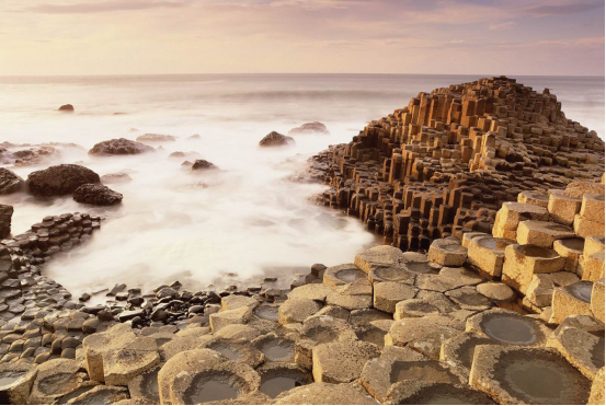 北爱尔兰安特令郡海岸的巨人堤道由参差错落的玄武岩柱构成,这些棱形岩柱长年经受海浪的冲击,不同高度的地方被截断,形成了巨人堤参差错落的梯级表面。数万根玄武岩石柱井然有序,磅礴的气势令人叹为观止,1986年被联合国教科文组织评为世界自然遗产,1987年被北爱尔兰环境部评为国家级自然保护区。