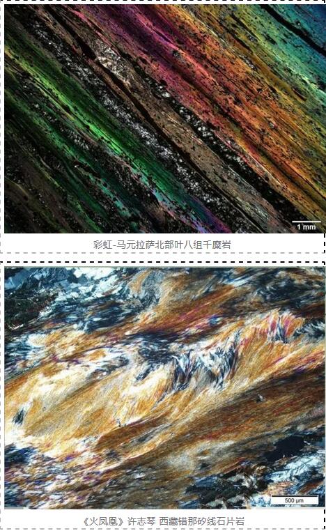 摄影也是一种发现美的方式。将地学与摄影结合,把镜头中的地学世界呈现给大众,也是一种地学科普的新形式。2016年,大陆构造与动力学重点实验室与地质研究所工会联合主办了以“显微镜下大千世界”为主题的微观世界摄影展。在显微镜下,人们能看到世间异常的形态、少见的色彩、罕见的纹理与独特的样式。