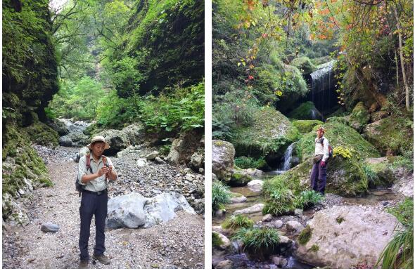 3月29日,记者和李益朝一同前往汉中市南郑区小南海镇天坑集中分布区,在深一脚浅一脚地走过大约一千米的河道后,来到天心洞的洞口。往里走,洞道里宽窄不一,水从高处石面上渗出,让人感到阴冷潮湿。抬头望去,光线从数十米高的天窗照进洞里,人站在下面,犹如站在大自然形成的漏斗里一般。李益朝告诉记者,仅仅这个小洞,他就来过十几次。大自然的鬼斧神工,使得天坑口有椭圆的,也有扁的,形状并不规整。洞道里也是形态各异,景色各有不同。这里地下洞穴的温度往往稳定在9℃到12℃,与当地年平均温度相当。项目组忙起来的时候,有时需要在伸手不见五指的洞道里,带着仪器、手电和干粮,生活两三天。
