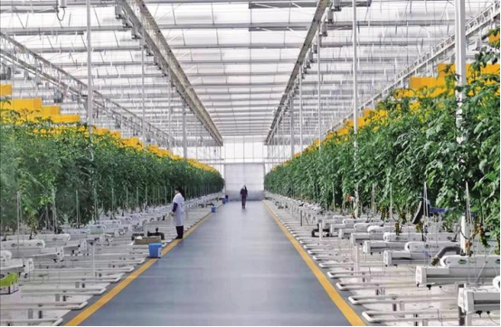12月11日,记者一行来到杨凌智慧农业示范园。在高大、透光的智慧温室内,我们感觉到夏日般的温暖,只见热水管线整齐排列在地面,立体种植的小番茄枝繁叶茂、红绿相间。工作人员介绍,温室中的小番茄每年8月种植,从10月进入采收期,一直持续到第二年7月,整个栽培季节,每平方米面积果实产量在30公斤至50公斤。
