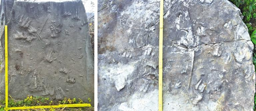 在延安市甘泉县发现的恐龙、鳄类和龟鳖类共生遗迹。 陕西省地质调查院供图