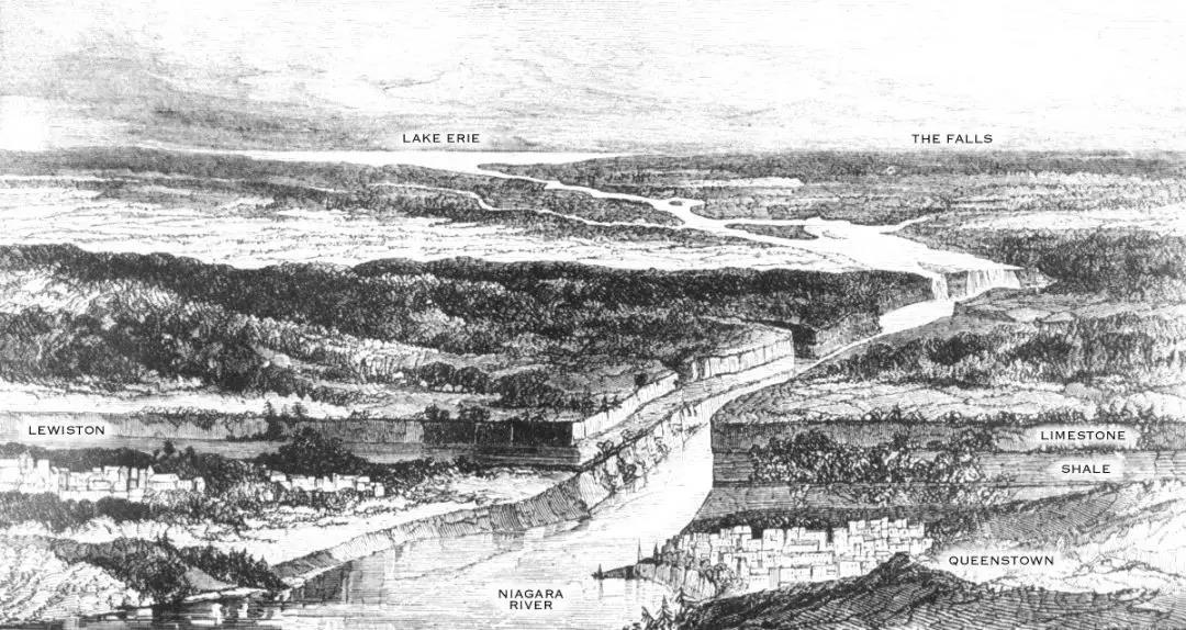 查尔斯·莱尔 (Charles Lyell)于 1845年手绘的美国加拿大边境的尼亚加拉河与大瀑布??