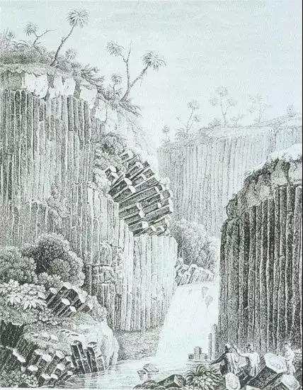 真正意义上的科学旅行可能要数德国的洪堡(Alexander von Humboldt,1769-1859,相当于大清乾隆34年-咸丰9年)。他出生于一个贵族家庭,1787年,18岁的他,进大学学习哲学与法律,两年后转学生物学,只学了一年再转学采矿地质,在读期间考察了比利时、荷兰、英国、法国、瑞士、意大利和德国南部。大学毕业后到矿务局任高级工程师。1799年他计划跨越大西洋去中南美洲考察,在获得国王的资助后,他和法国植物学家Aimé Jacques Alexandre Bonpland带着船队一走就是五年,到了中南美洲。他们从中美洲采集了6000种植物标本,其中有3500种是欧洲人从来没见过的。洪堡在中南美洲的这五年时间,做了大量的考察笔记,那些地质素描图中岩层、构造、生物学、古生物学、地质学,每个细节都做到精致精细,到了古巴,他还把看到的火山喷发的玄武岩的柱状节理给仔细地画了下来。