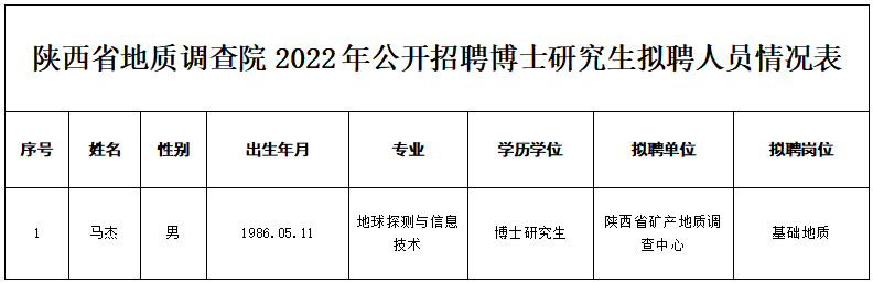 附件:陕西省地质调查院2022年公开招聘博士研究生拟聘人员情况表