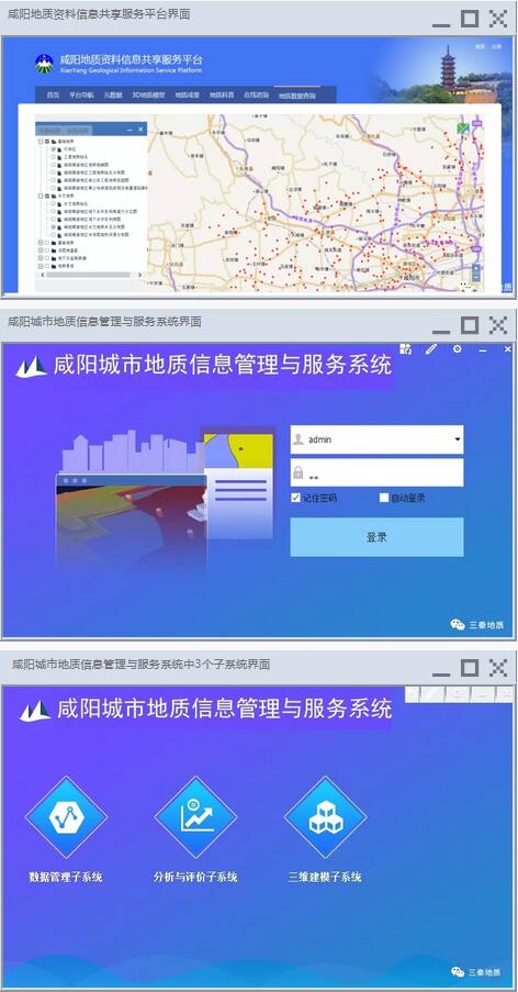 4、研发了我省首个城市地质信息管理与服务系统,建立了城市地质数据管理、分析评价、三维建模和共享发布4个子系统,显著提升了咸阳城市地质调查成果的信息化服务水平,有力推进了咸阳数字城市建设。