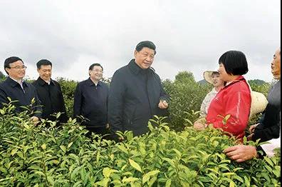 4月21日,习近平在安康市平利县老县镇蒋家坪村女娲凤凰茶业现代示范园区,同茶农们亲切交谈。