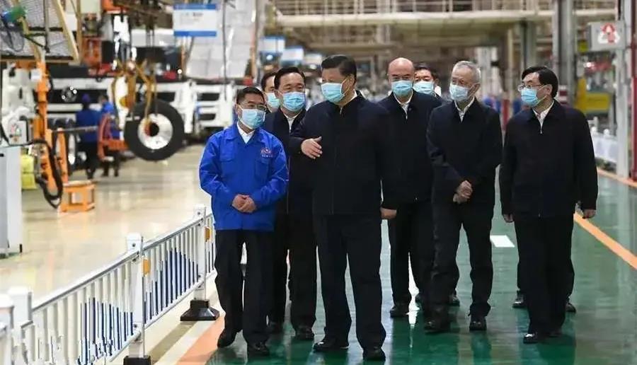 22日,习近平在西安考察复工复产和经济社会恢复运行等情况。陕西汽车控股集团有限公司是西北地区有影响力的制造企业。习近平详细了解产品研发、生产、销售和复工复产情况,对他们克服疫情影响创产销历史新高表示赞赏。总装车间内一片繁忙景象。习近平察看内饰生产线、总装配生产线,饶有兴致登上装配完成的民用重型卡车驾驶室,向技术人员询问产品性能和操作流程。习近平强调,制造业是国家经济命脉所系。国有大型企业要发挥主力军作用,在抓好常态化疫情防控的前提下,带动上下游产业和中小企业全面复工复产。习近平指出,新时代陕西要有勇立潮头、争当时代弄潮儿的志向和气魄,既要抓住西部大开发、共建“一带一路”等重大机遇,又要善于从眼前的危机和挑战中抢抓和创造机遇,不断发展新模式、新业态、新技术、新产品,创造新的更大业绩,迈上新的台阶。