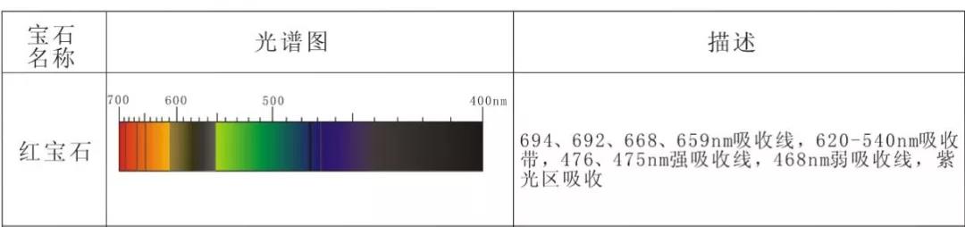 光谱显示非常典型的光谱特征,但是光谱的清晰程度与颜色的深浅密切相关,多采用透射法,若宝石颗粒较小、或者透明度较差,可采用反射法观察,具体光谱如下图所示。