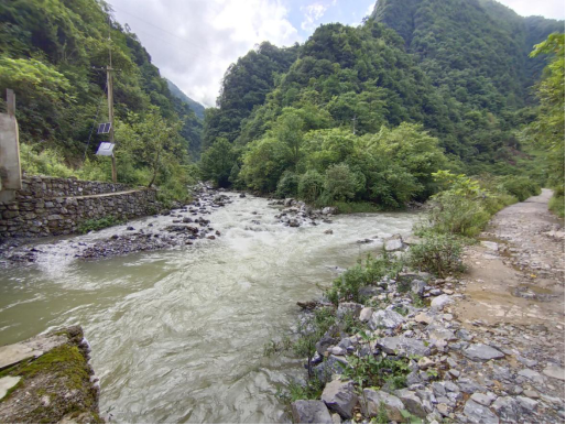 沿清水河、红渔河考察,河水清澈见底,奇石或卧或躺,水流湍急,岸边青草依依,麻柳垂岸耸立。溯流而上,在一个小水坝后,采用无人机探测,终于探测到地下暗河洞口。水桶粗的地下河水,从洞中磅礴涌出,冷气袭人,用手探之水温冰凉,掬一捧水饮之,沁人心脾如同甘泉甜美。洞中地下水与地表溪水相汇,由于温差较大,河面顿时水汽蒸腾弥漫,如同曼妙的仙境。烈日盛夏置身河中,扑面而来的凉爽与高浓度负氧离子,让人心旷神怡。镇巴溶洞多,地下水量大,气候湿润,秋雨绵绵。唐朝诗人李商隐写下了脍炙人口的《夜雨寄北》“君问归期未有期,巴山夜雨涨秋池;何当共剪西窗烛,却话巴山夜雨时”,表达出大巴山多秋雨的气候与蜀道艰险之感触。传说红渔河一带,山洞中有黑龙隐居,洞中鱼虾穿梭护卫,每当桃花盛开之时,黑龙游春,鱼虾随行,红渔河便鱼虾满河,一些红鲤鱼看见河水清澈,阳光明媚,不忍归去,便留在河中,人们在桃花盛开季节便到河中捕鱼,鱼肉味道十分鲜美,从此便有了这条清清的红渔河,人们修建一座桥称作凉桥。探访位于岸边的红渔河,洞口与河岸大致齐平,地表水与地下河连通,河水较小时,洞口露出,有地下河水流出河中,雨季河水暴涨,则河水倒贯进入洞中,河中的鱼进入洞中,并在洞中低洼处生长繁衍,待春季涨水时节,倒灌的河水进入洞内,鱼儿随之流出,形成“桃花鱼”奇观。真可谓:高山流云似玉带,清水蒸腾仙霞来,一江流岚满涧走,鱼隐洞中龙入海。