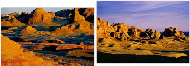 今天,为大家展示的是这样一幅图景:几乎看不见一草一木,到处都是沙海砺石,黄色的黏土雕像四处林立,在高远湛蓝的天空下,各种各样的造型活灵活现。在这里,你将会欣赏到与以往不同的风景,感受到与以往不同的风情,看看这自然雕刻的苍凉之美——雅丹地貌。