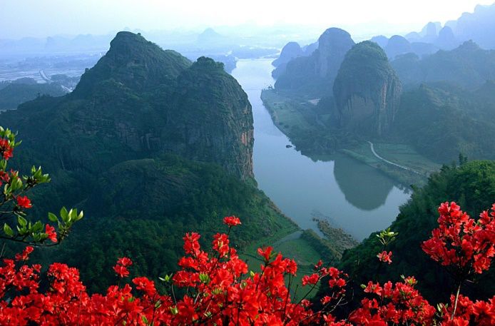 被誉为“中国红石公园”的丹霞山,位于广东省韶关市仁化县与浈江区交界地带。是国家级风景名胜区、国家级自然保护区、国家地质公园、国家AAAA级旅游景区,也是以丹霞地貌为主的自然风景区。它的许多悬崖峭壁,如刀砍斧劈,直指苍天,无数奇岩美洞,景色绮丽。